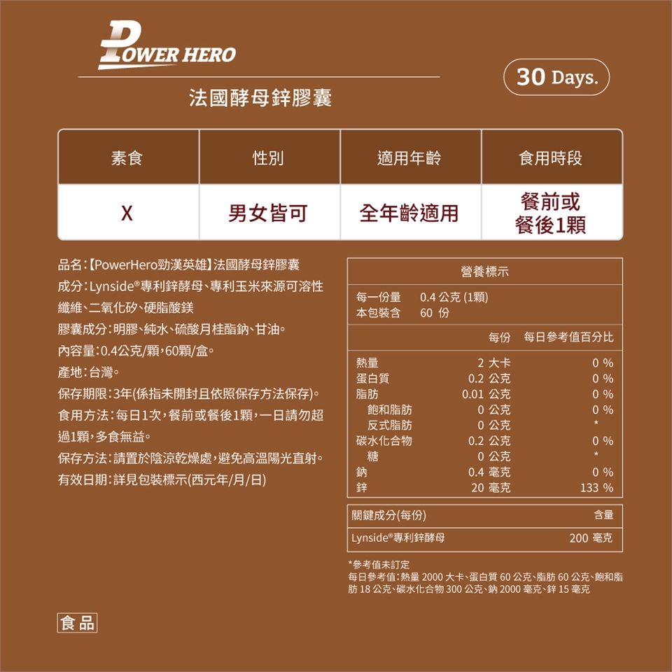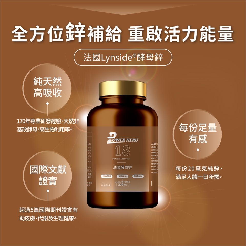 ➤PowerHero選用全球酵母領先品牌LESAFFRE酵母鋅