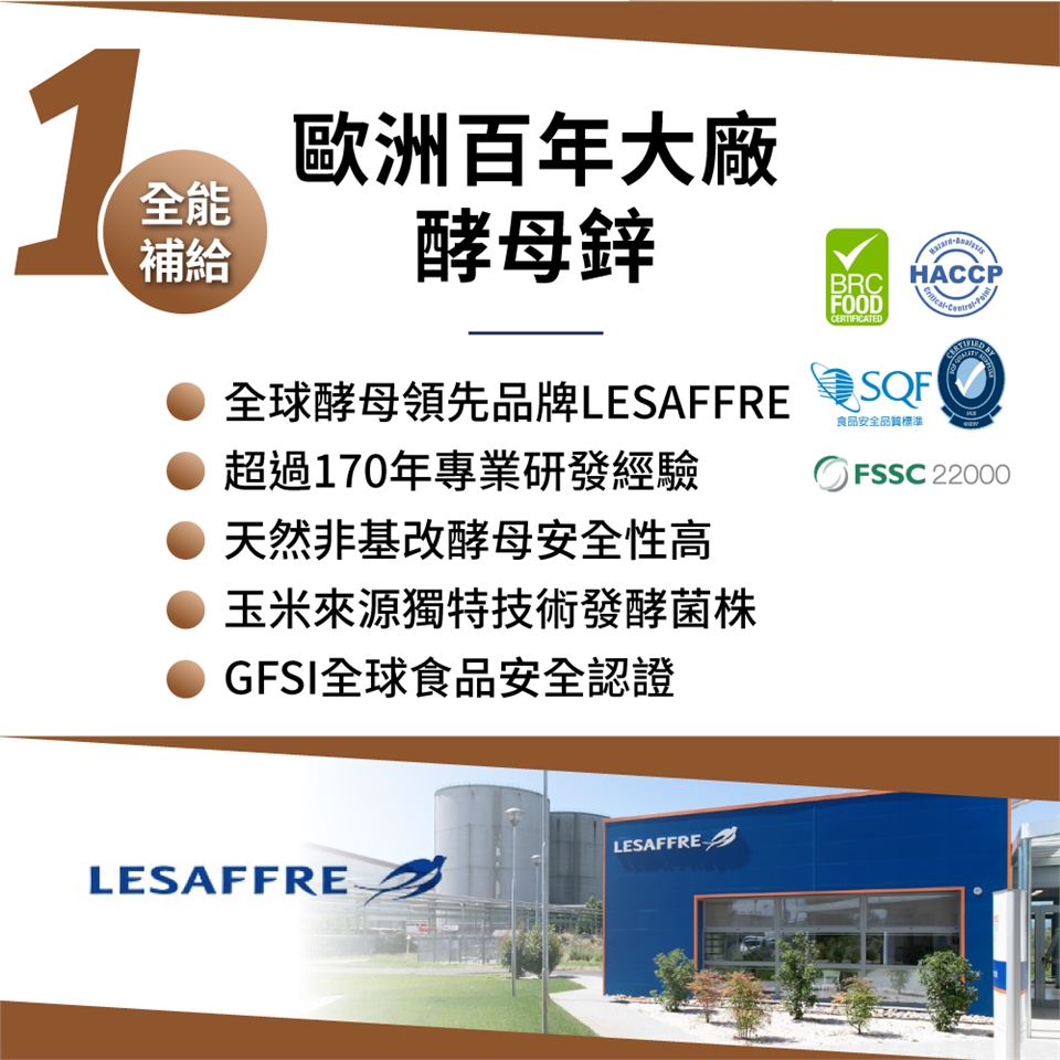 1. 純天然高吸收:超過170年專業研發經驗、玉米來源獨特技術發酵菌株、天然非基改酵母安全性高、GFSI全球食品安全認證。