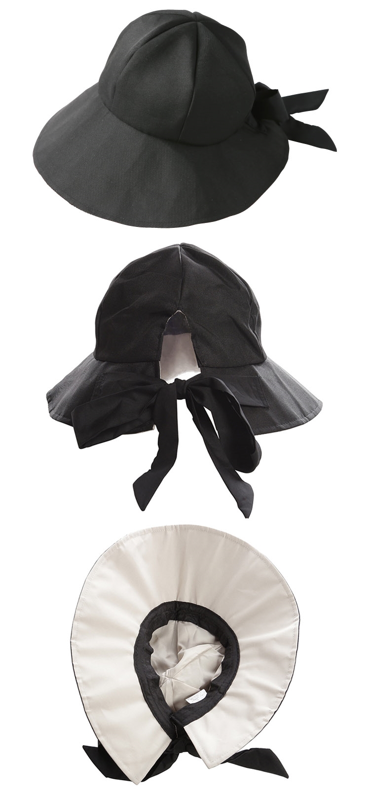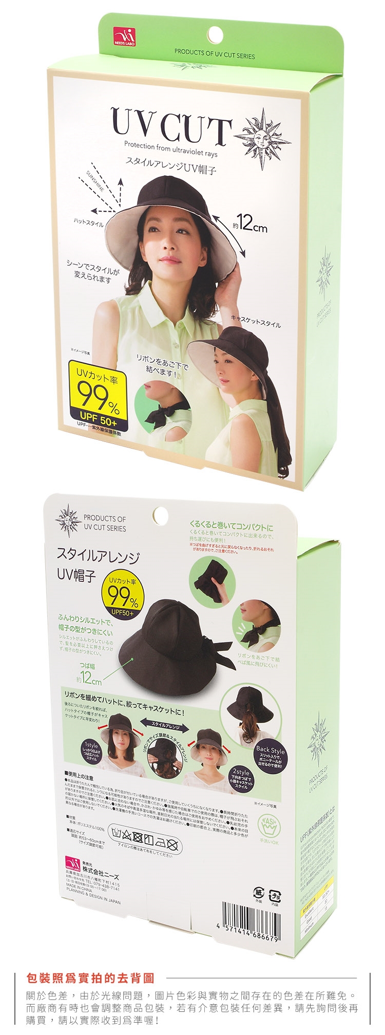 ●【品名】日本NEEDS百搭2合1遮陽帽防曬帽子686679黑色蝴蝶結(12cm寬大帽簷&小臉報童帽;抗UV紫外線UPF50+)圓盤漁夫帽戶外休閒淑女帽