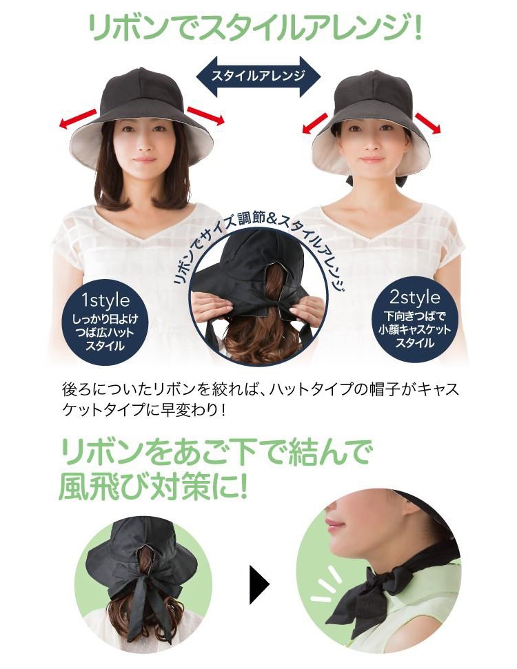 ●帽子可變換兩種風格(寬帽簷款&小臉報童款);蝴蝶結綁帶也能減少帽子飛走的可能。