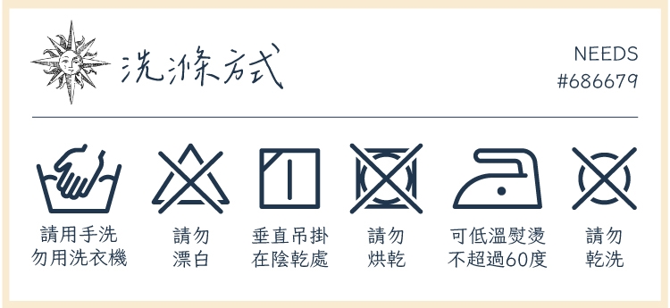 ●請勿使用洗衣機洗滌,就算是選擇手洗模式也請避免使用。