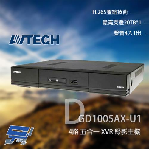 [昌運科技] AVTECH 陞泰 DGD1005AX-U1 (替代DGD1005AV-U1) 4路 H.265 五合一 XVR 錄影主機