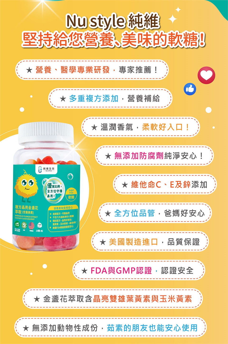 【純維】複方晶亮金盞花萃取軟糖:每次一顆,每日一次。