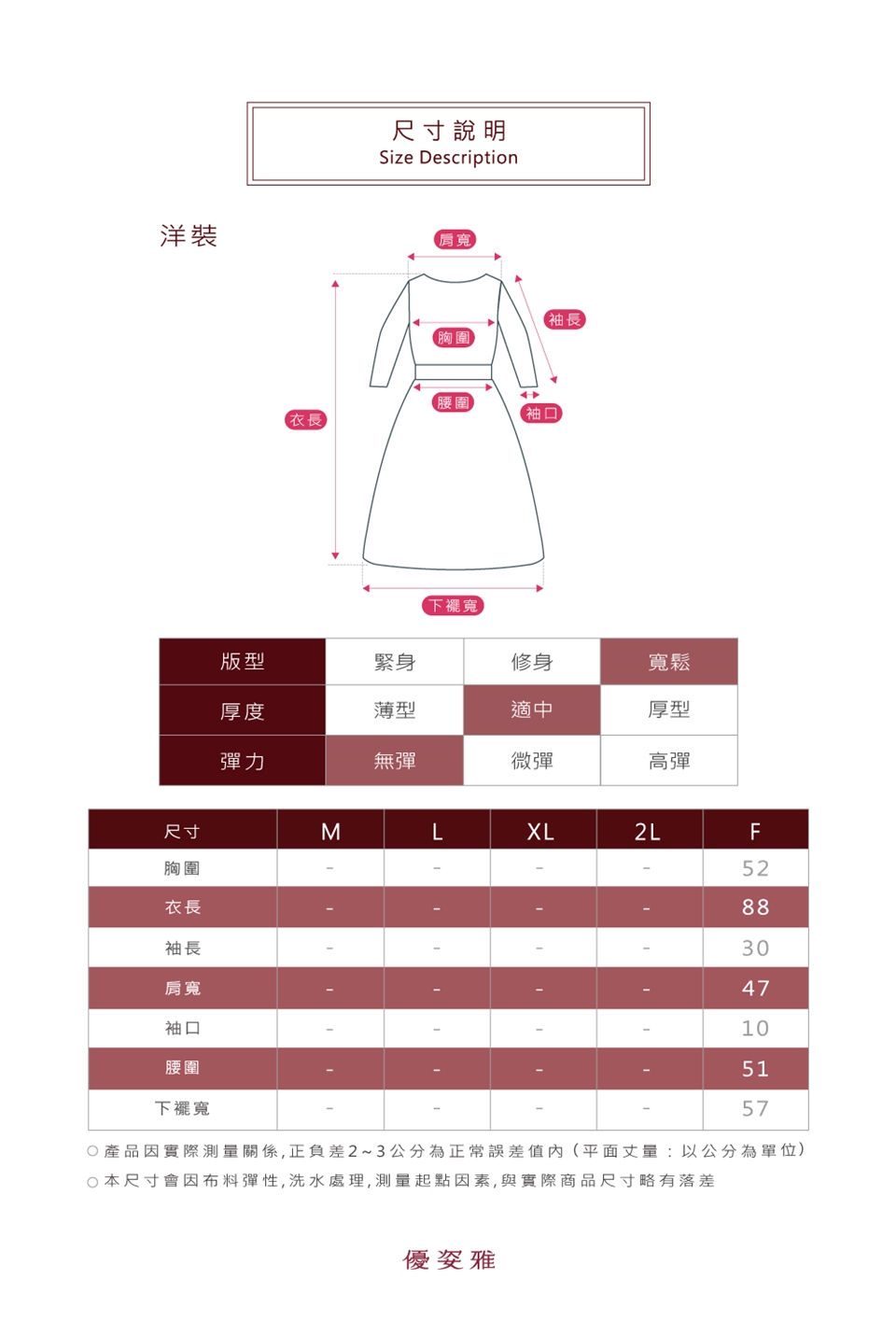 ※ 本尺寸會因布料彈性、洗水處裡、測量起點因素與實際尺寸略有落差