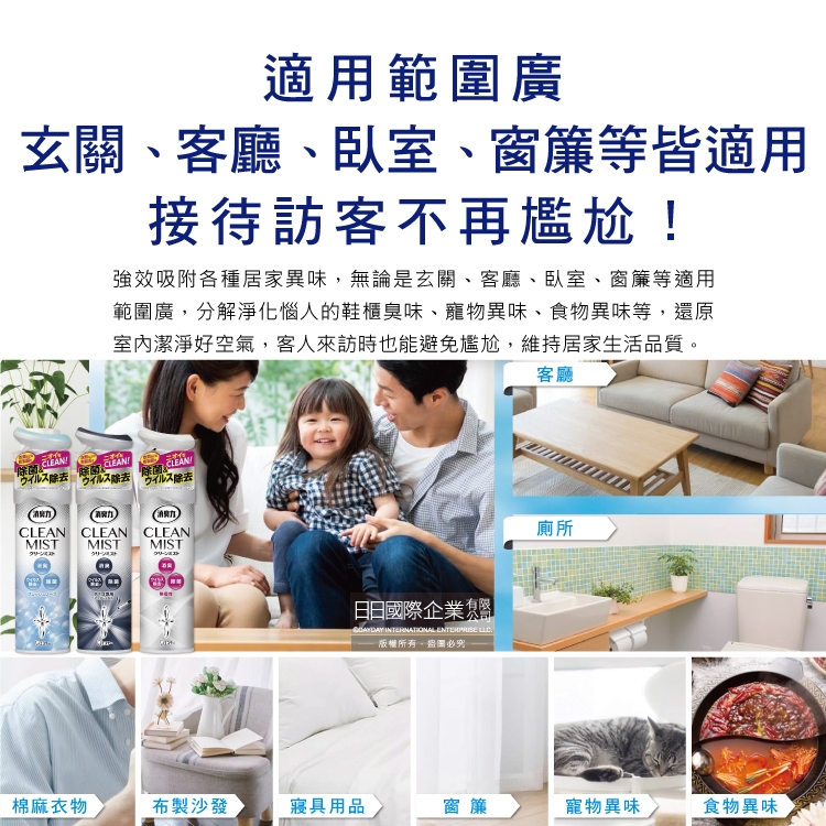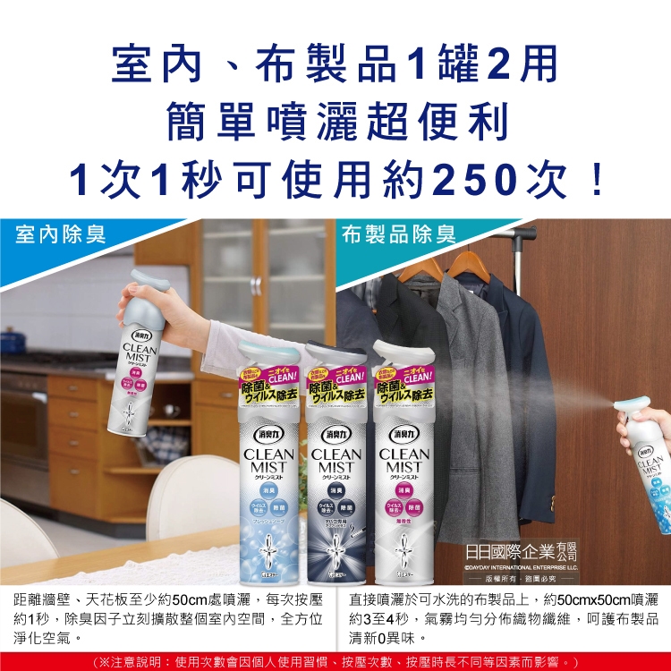 ●品名:消臭力2合1室內空間布製品淨味除臭香氛噴霧