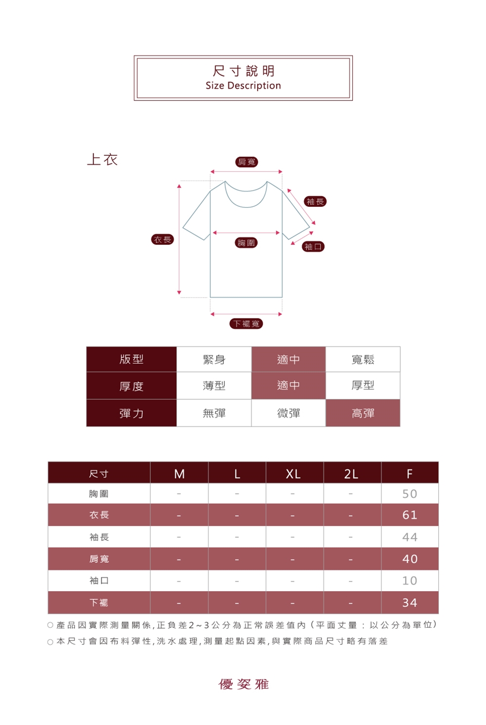 ※ 本尺寸會因布料彈性、洗水處裡、測量起點因素與實際尺寸略有落差