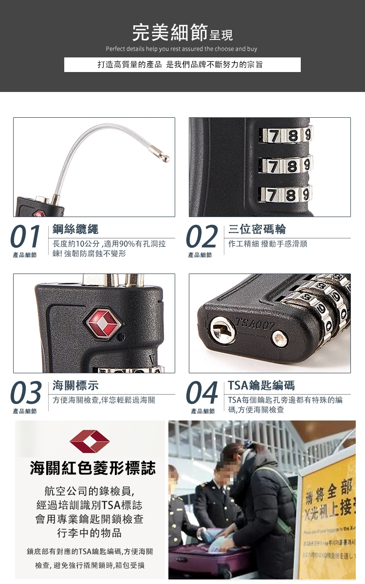 產品品名:TSA旅行箱海關鋼繩密碼鎖