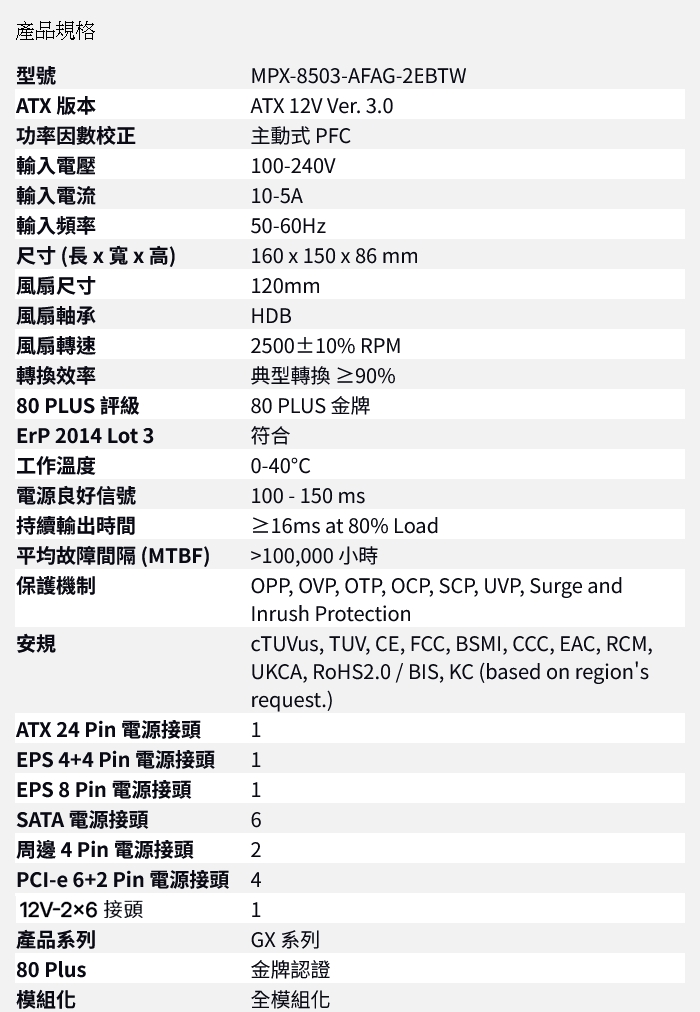 ※以上規格資料若有任何錯誤,以原廠所公佈資料為準。