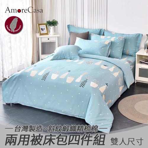 【AmoreCasa】MIT精選緞織精梳棉兩用被床包組(雙人/多款任選/四件組/親膚舒適/均一價)