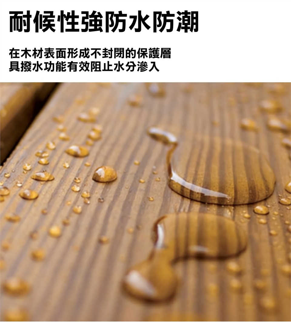 ※如需具有防蟲防腐或防霉效果,可使用本品牌的〝室內外護木漆〞或〝室外強力防虫腐防霉塗料〞。