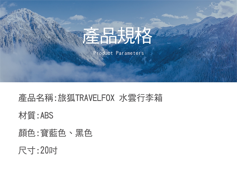 商品名稱:旅狐TRAVEL FOX 水雲行李箱