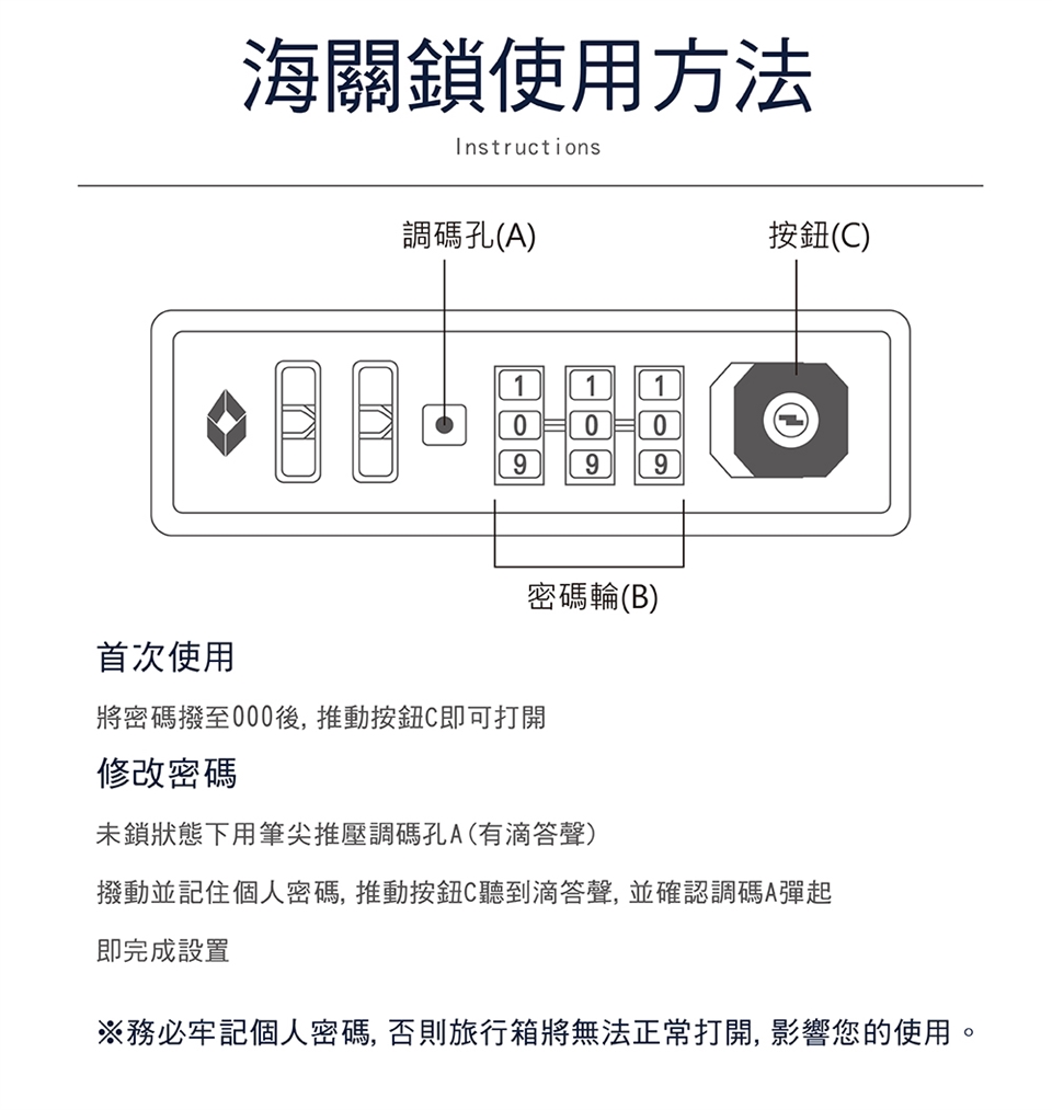 拉桿、輪子、輪座、手提把、密碼鎖、海關鎖