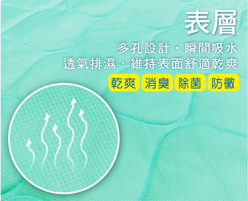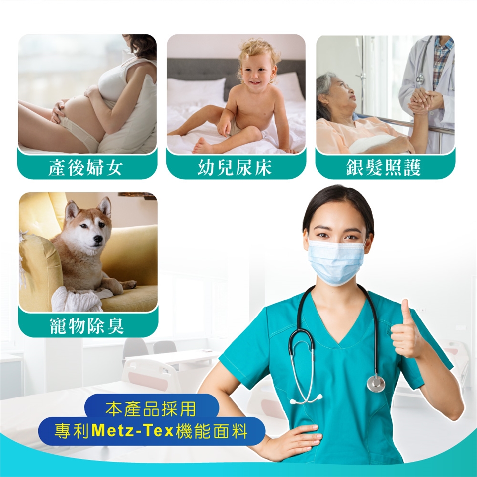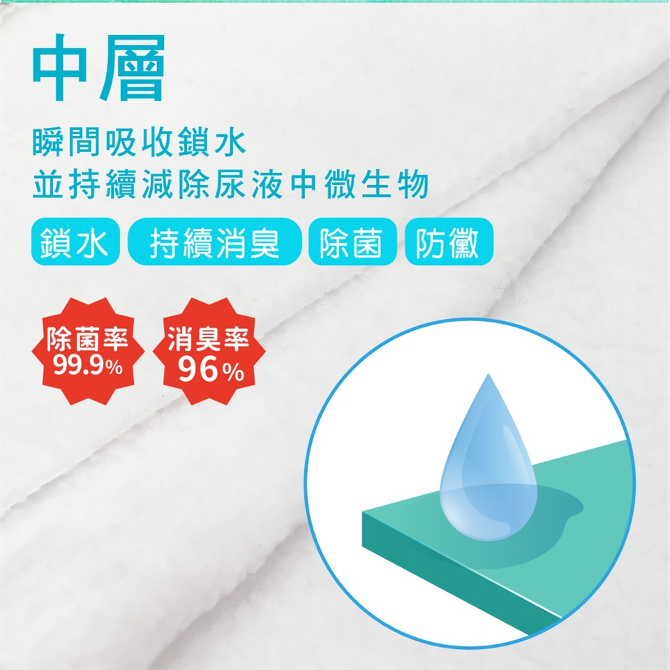 吸水性特強,乾爽表層,有最佳消臭、防黴、骯菌機能,防止臭味擴散汙染居住照護環境