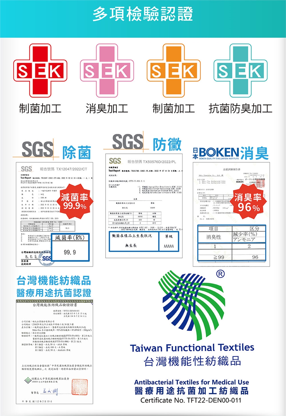 紡拓會抗菌、防黴、消臭認證
