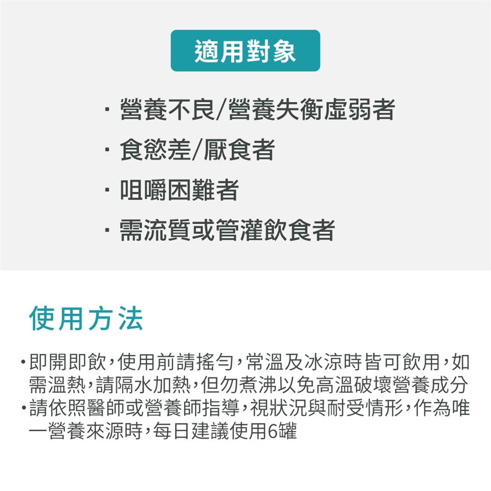 •即開即飲,使用前請搖勻,常溫及冰涼時皆可飲用,如需溫熱,請隔水加熱,但勿煮沸以免高溫破壞營養成分