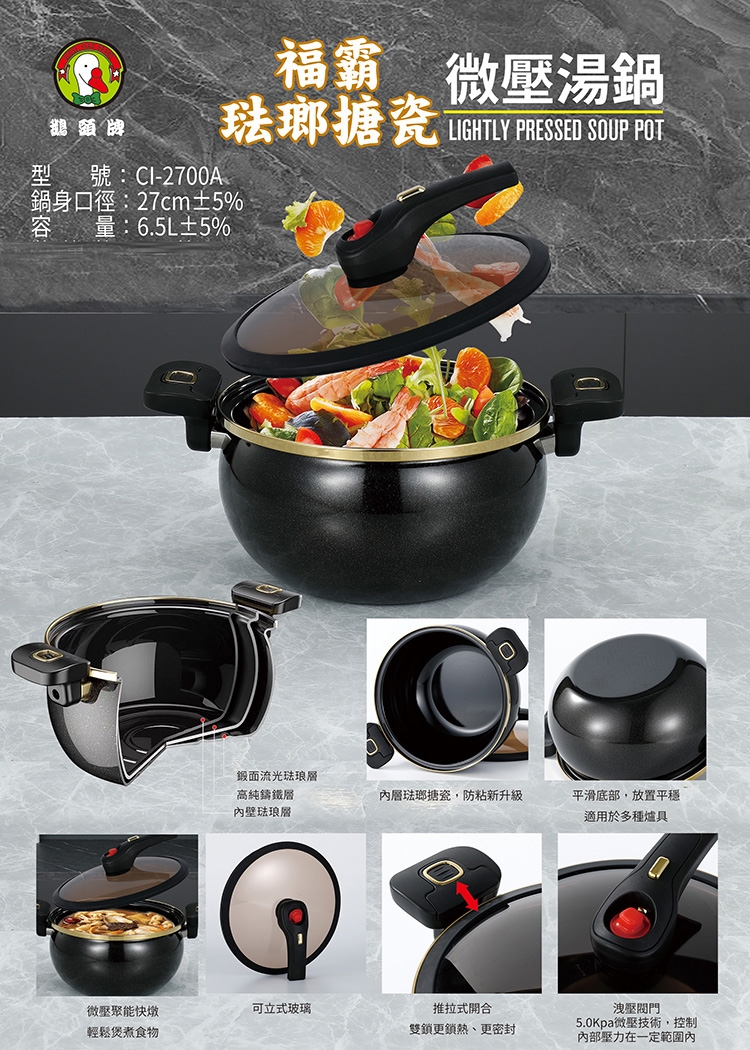 【鵝頭牌】福霸琺瑯瓷微壓湯鍋27cm(CI-2700A)