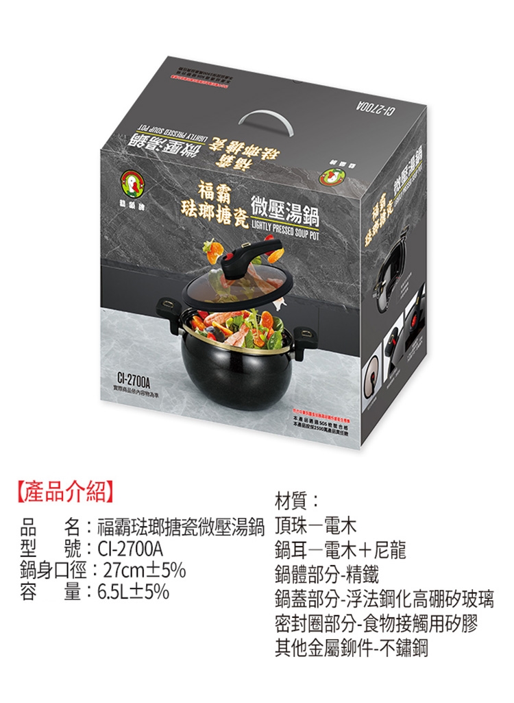 *品名:福霸琺瑯瓷微壓湯鍋