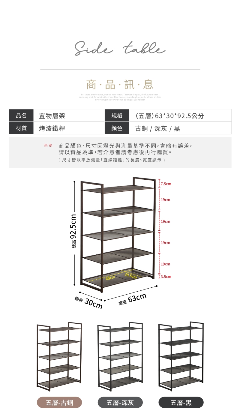 尺寸:5層63*30*92.5CM