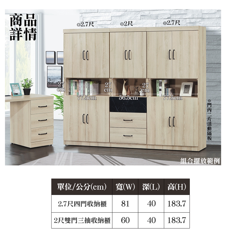 商品說明:符合標準低甲醛木芯板、PVC浮雕、全組木芯板、油壓式後鈕