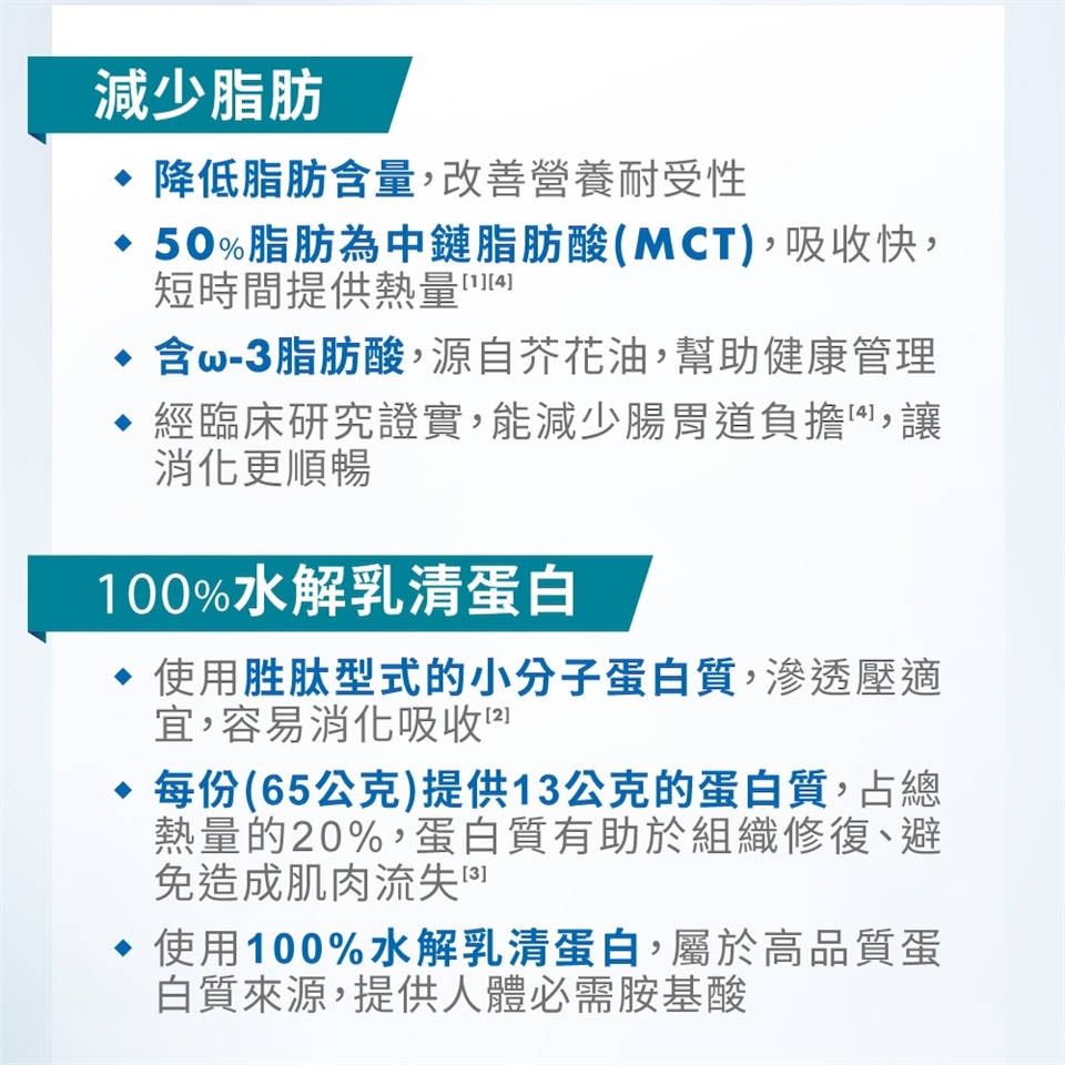 6.本產品屬特定疾病配方食品,非供靜脈注射用,不適合一般人任意食用,其用量、濃度需經過醫生、營養師指導使用,多食對改善此類疾病並無幫助