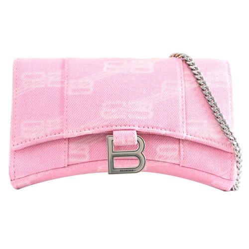 BALENCIAGA 巴黎世家 714123 Hourglass XS 緹花帆布斜背鍊包.粉