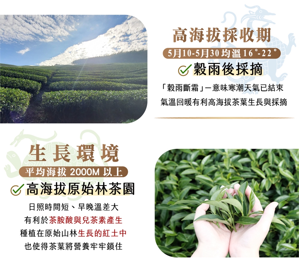 未開封▶可放置陰涼乾燥處一年半~兩年,越快飲用完畢越好,放置過久可能因微氧發酵影響茶葉鮮度品質。