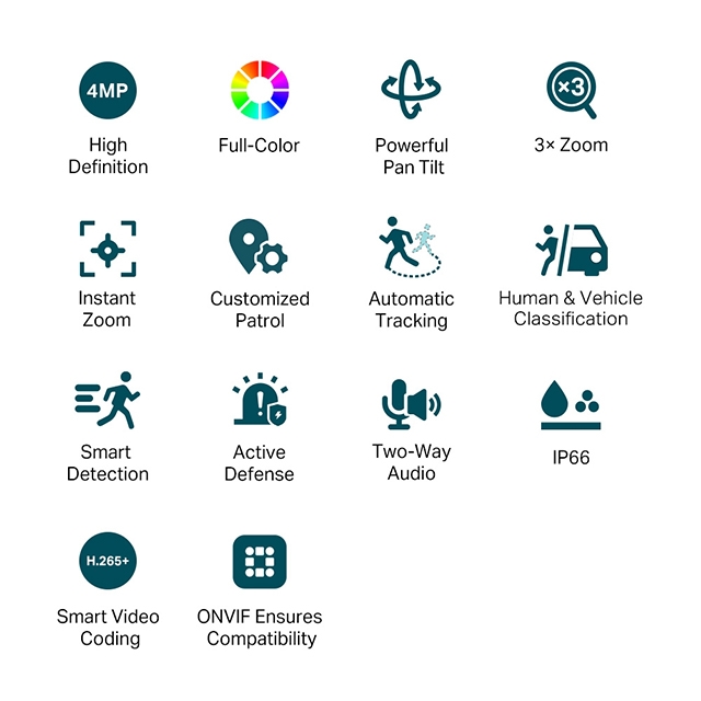 -強大的旋轉鏡頭:自定義巡邏路線及自動追蹤,提供更智慧的功能以監控關鍵區域,以提高您財產的安全性。