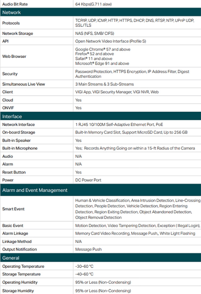 -彈性的管理及儲存:透過四種方式完全管理您的環境安全:網頁、NVR 管理介面、VIGI app、VIGI Security Manager 軟體管理程式。支援本地儲存,並帶有 SD 卡插槽(最大支援 256GB)。