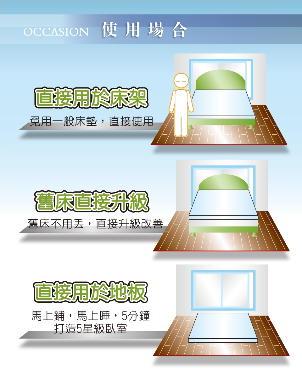 2.保固:正常使用下免費保固一年 (記憶床墊無回收舊床服務)