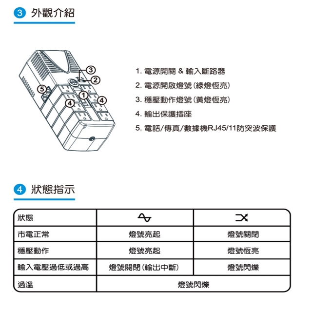 -具有RJ-11/RJ-45連接埠突波保護。