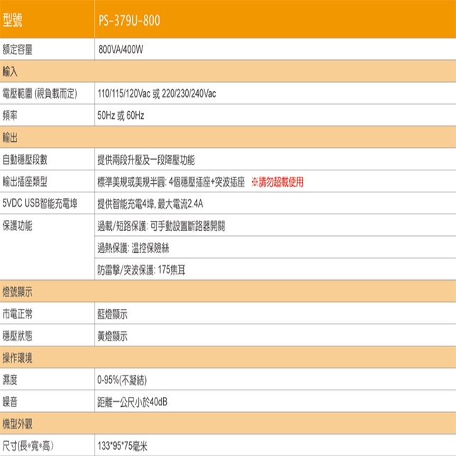 -自動調節高/低電壓,提供更穩定的輸出電源品質。