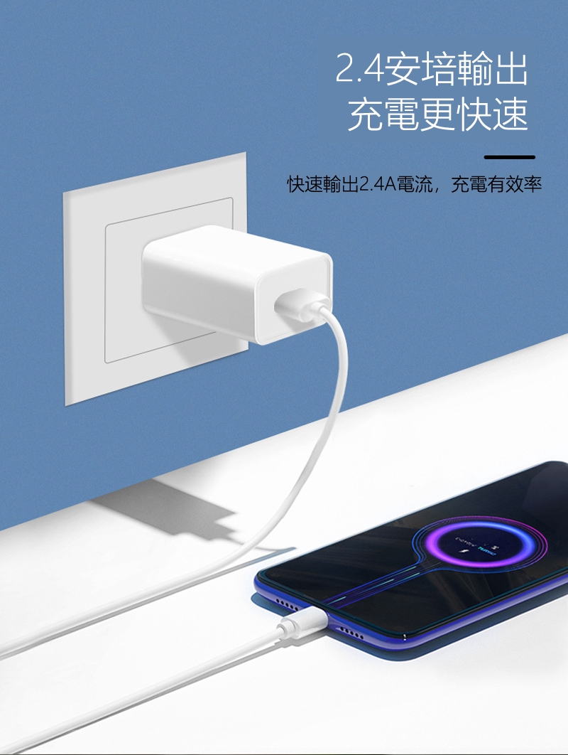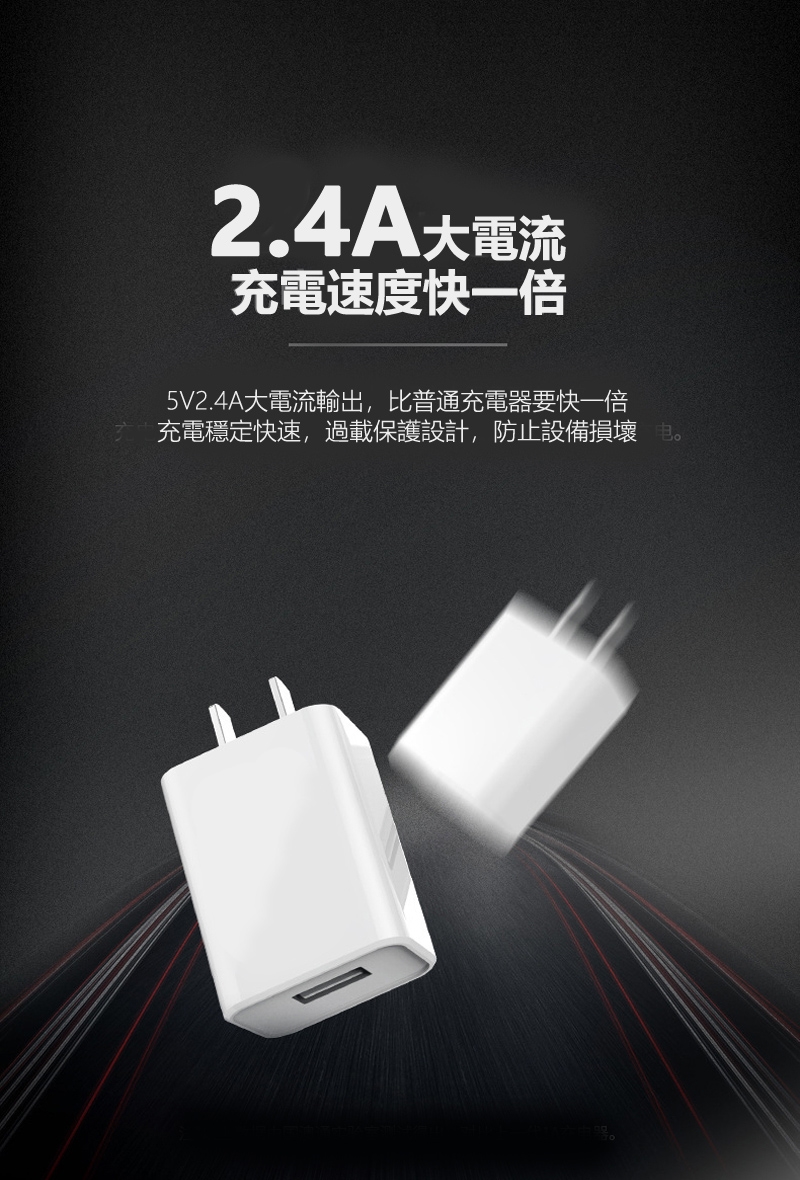 ◆DC5V/2.4A大電流輸出,充電快速有效率