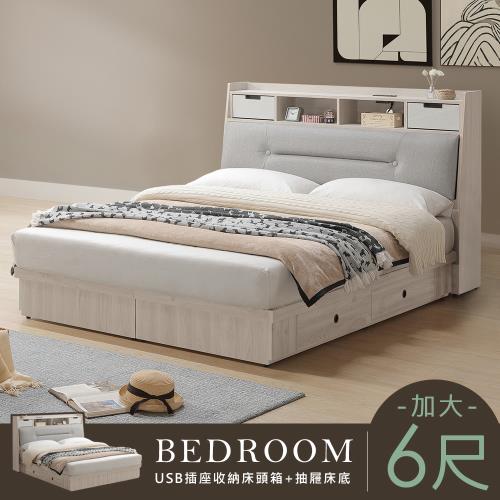 【Homelike】 喜家居雙人加大6尺附USB插座造型抽屜床組(2347)