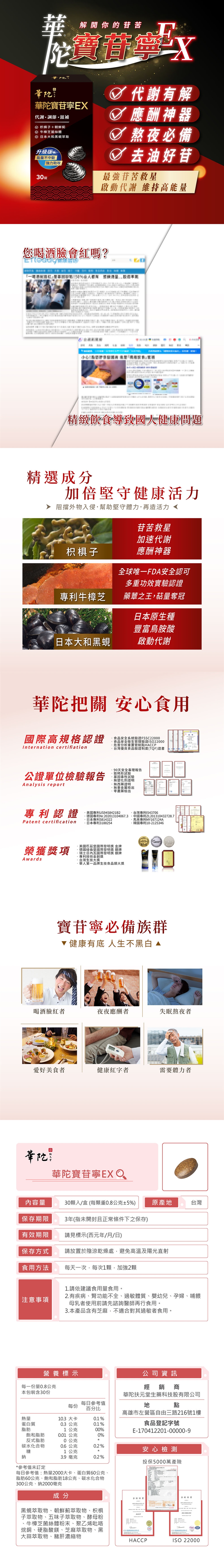 主商品:華陀寶苷寧EX(每錠0.8公克±5% )(30錠/盒)(市價:3980元/盒)x5(1盒可體驗,退貨需退回)