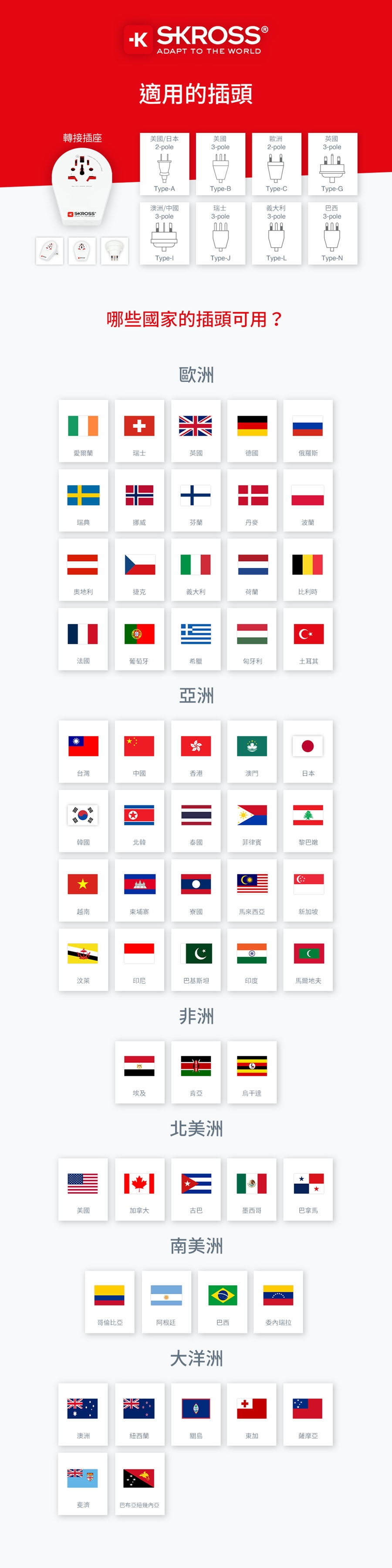 • 多國適用 |環遊世界,簡單充滿電力