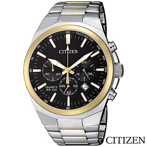 CITIZEN星辰 都會紳士視距儀三眼石英腕錶 AN8174-58E