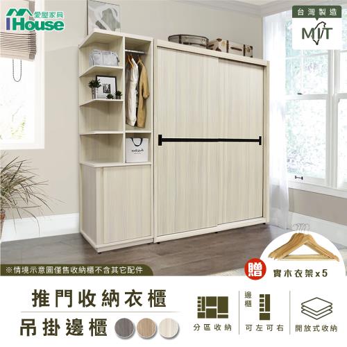 【IHouse】沐森 推門收納衣櫃/衣櫥+吊掛邊櫃 (贈實木衣架*5)