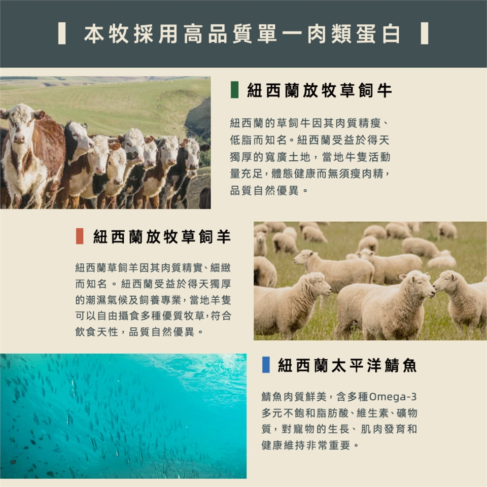 本牧來自紐西蘭,秉持簡單即是美好的原則,使用尊重動物福利的肉品來源,添加在地特色的傳統食材,讓毛孩吃得到純淨的紐西蘭大地滋味