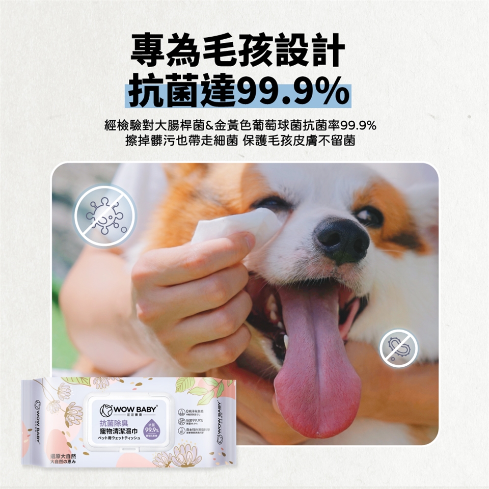 ✅專為毛孩設計抗菌99.9%除臭柔濕巾,蘊含馥郁花果香氛,清新淨化異味,昇華寵物肌膚防護力!