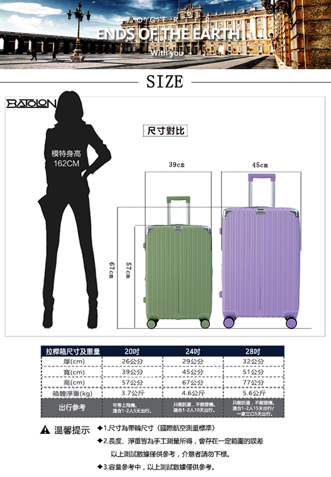 ※ 請勿用拉桿將箱子提起,提起箱子時請用上方或側面的把手;拉桿適用於配合輪子拖行時使用。