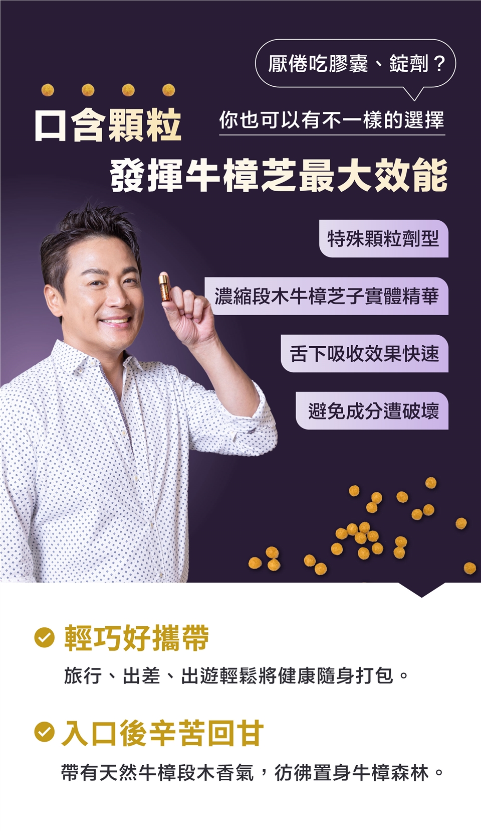 1.平日保健:含於口中,每次2粒,每日2次