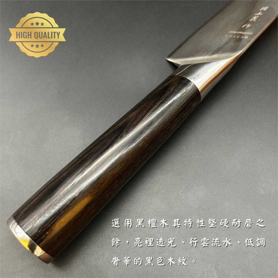 握柄:天然黑檀高密度、耐用耐磨防水,手握質感佳是主廚的最愛!!