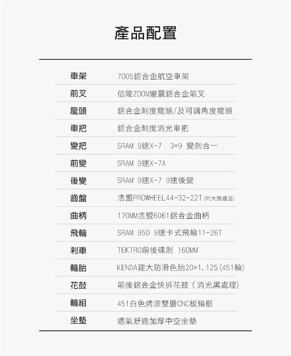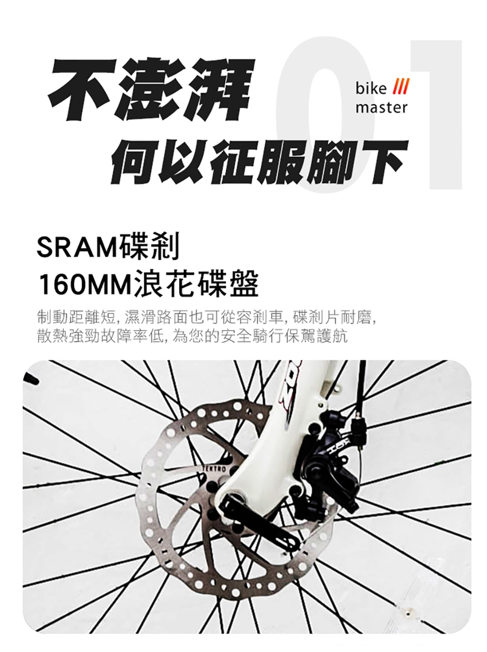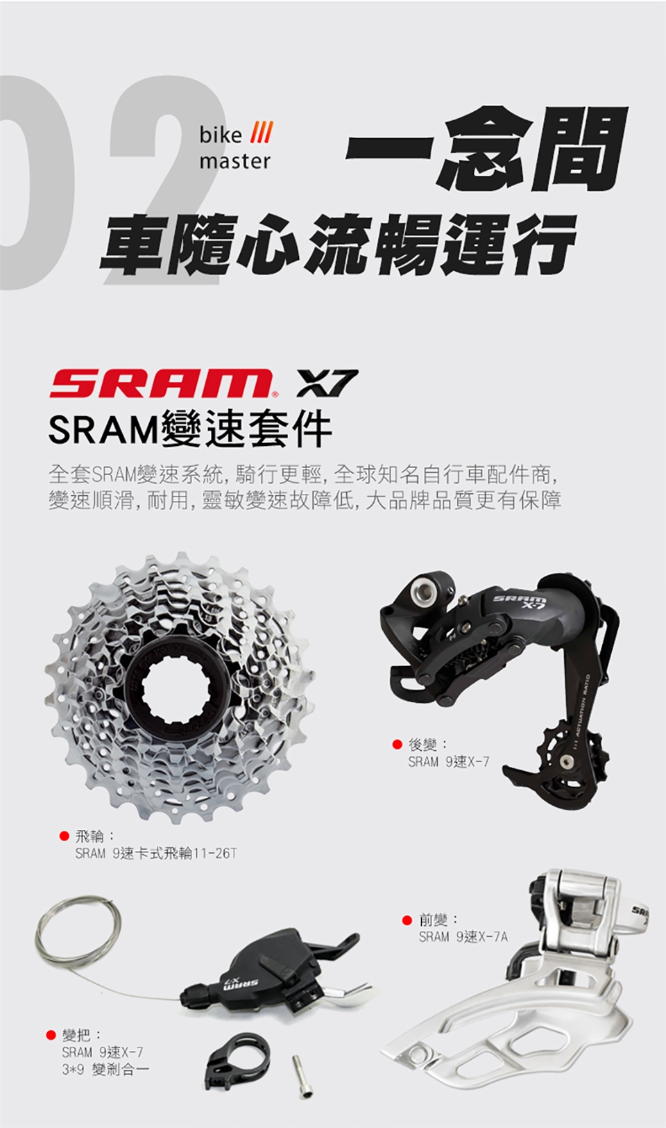 全新進化版,專利前避震 搭載 27速SRAM(速聯)前中後零組件變速器,