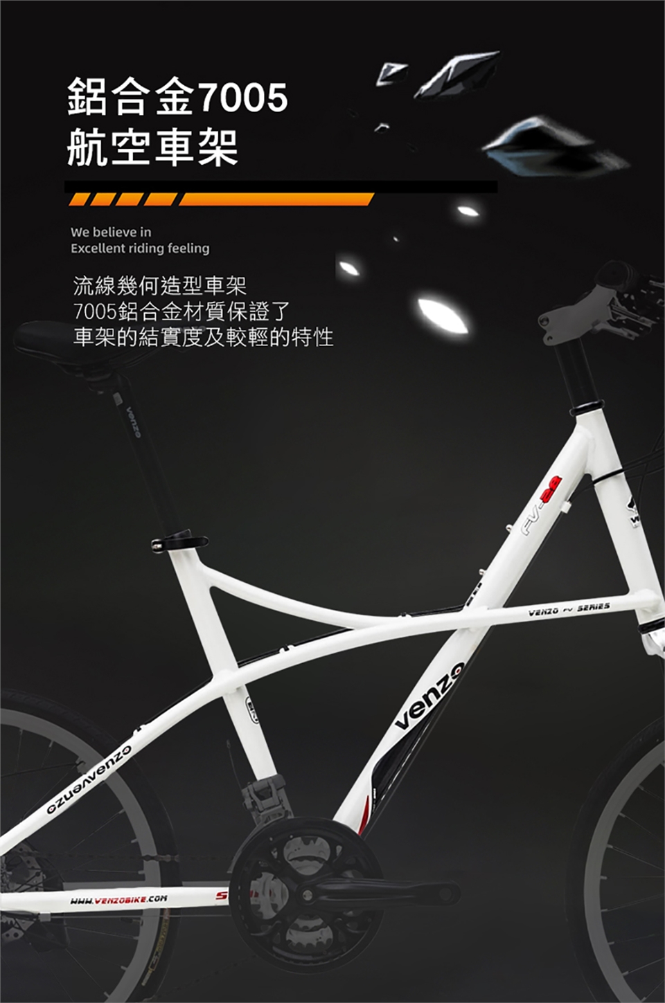 車架:7005航空鋁車架,TIG焊接 (魚鱗焊接)流線幾何造型車架