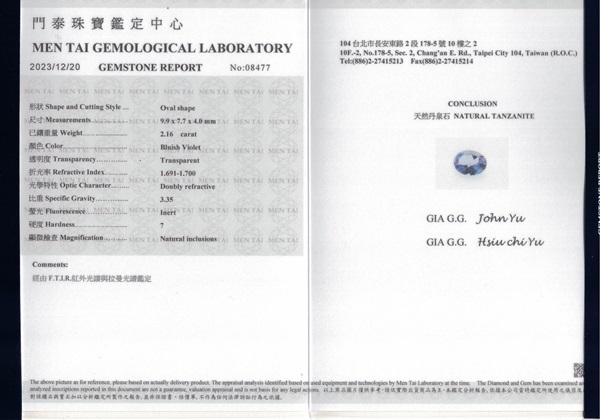 主石採天然2.16克拉天然非洲坦尚尼亞丹泉石,擁有最好的色澤與火光
