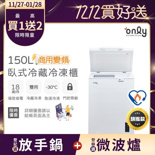 【農曆年前配送~倒數中!】only商用變頻150L冷藏冷凍櫃OC150-M02ZRI(節能標章150公升上掀臥式/年菜預購水產.團購.鍋物烤肉組囤貨)