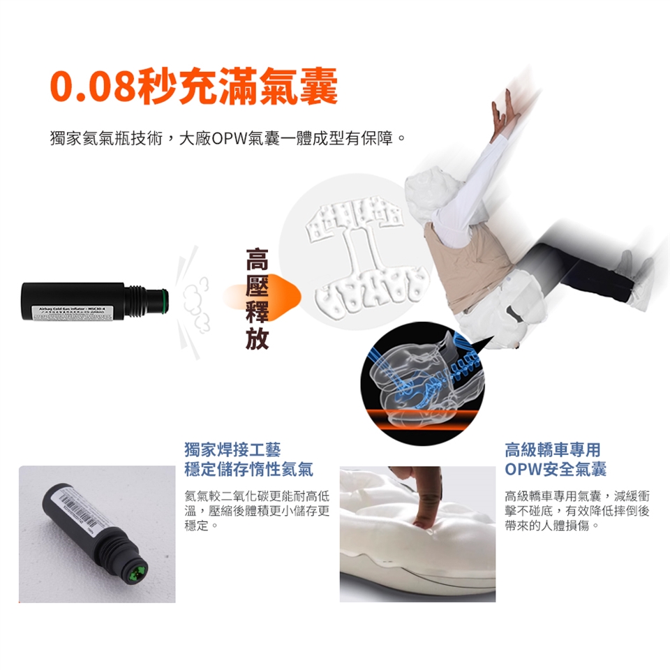 4. 防爆氣囊使用後, 付費更換新氣瓶, 即可重複再用.