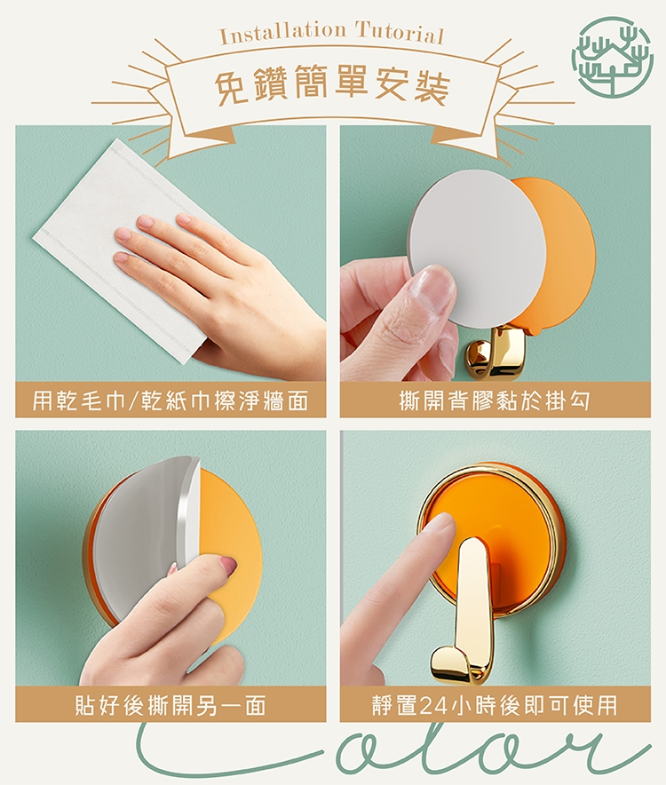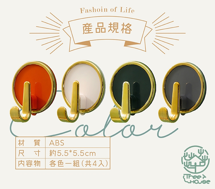 小樹屋-四色時尚金邊掛勾(4入一組)