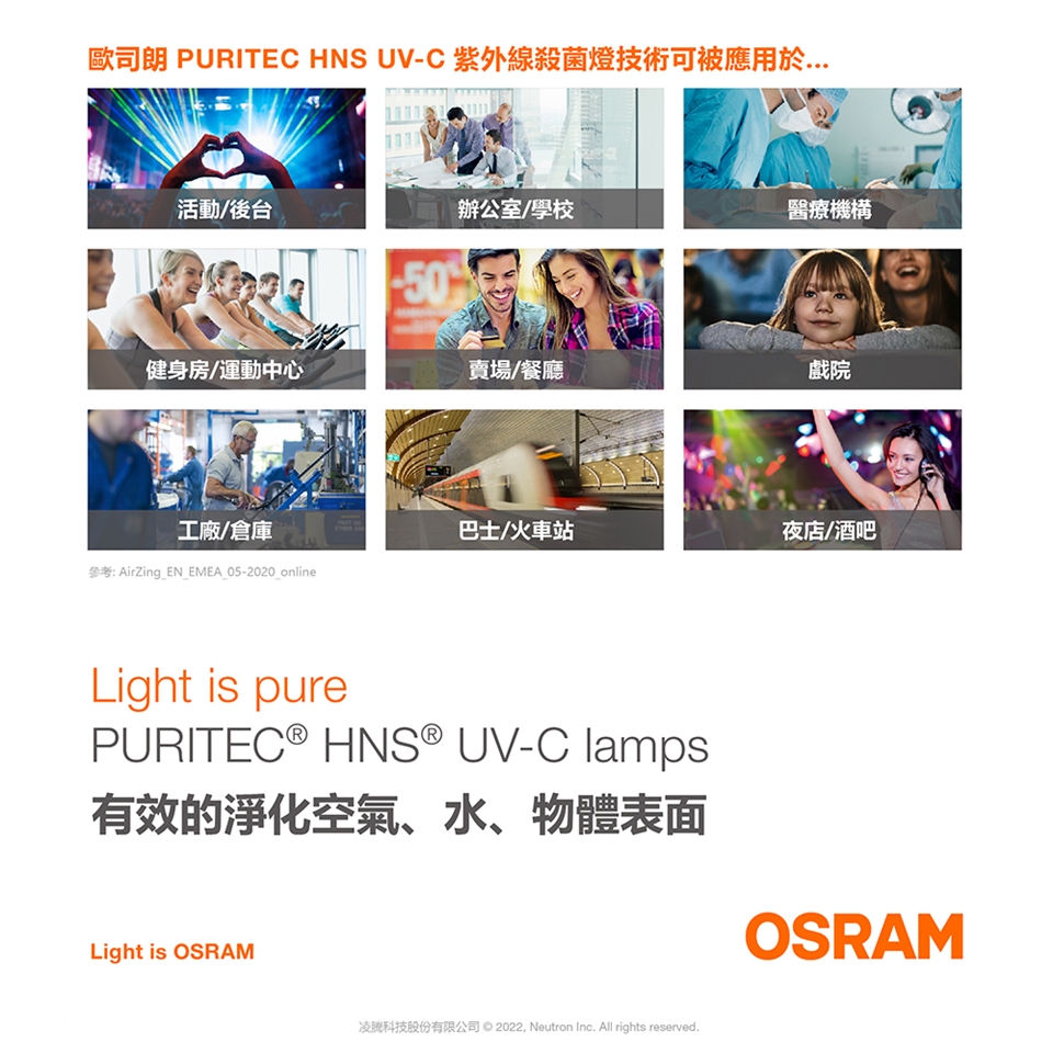 也不能將紫外線燈安裝於一般照明燈具中。