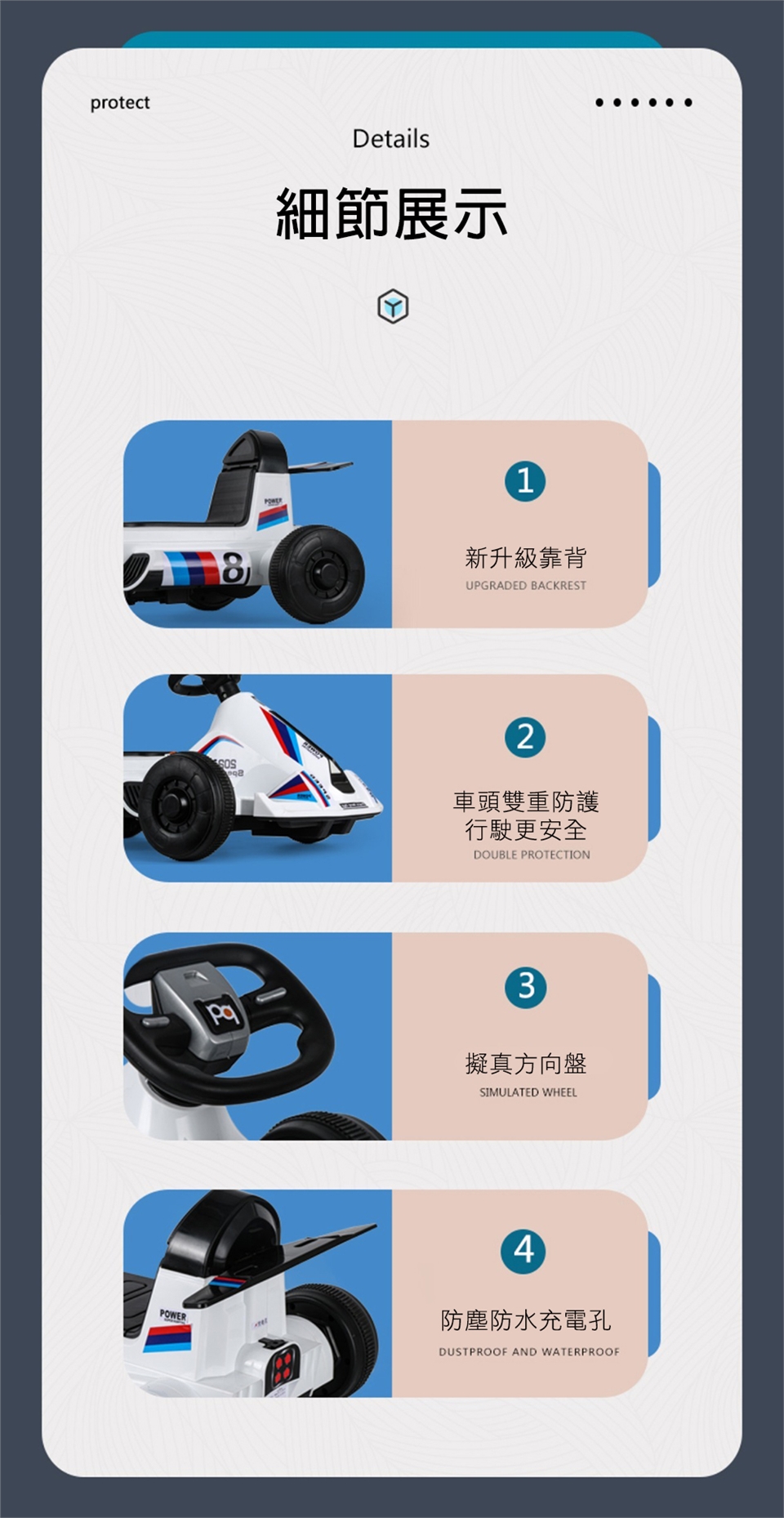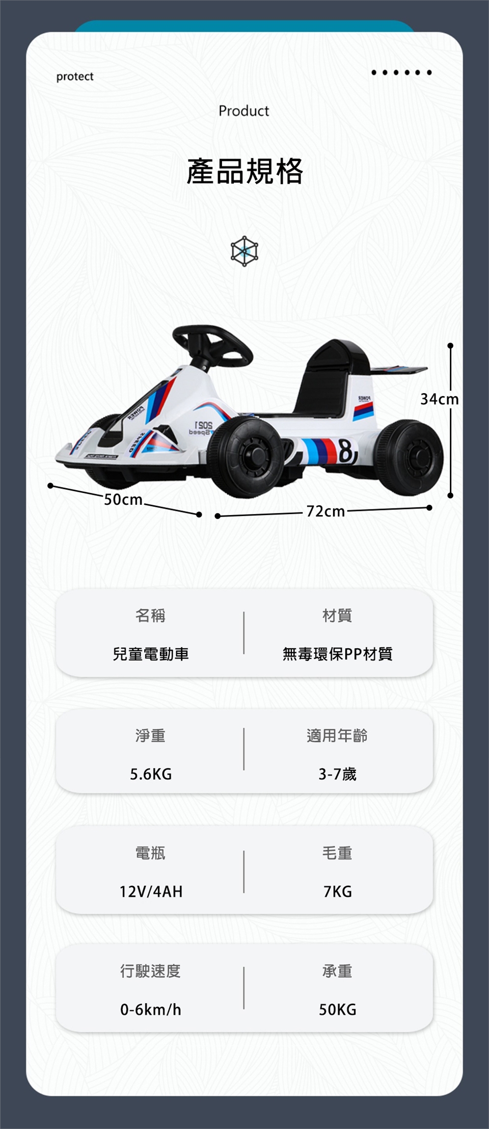 產品名稱:兒童電動四輪卡丁車